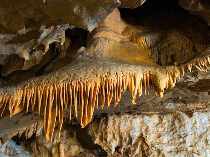 Local people knew about the opening to the Old Cave for a long time. The first people daring to go underground were J. Kovalčík and E. Laubert in 1923. The Hell Abyss, through which the New Cave was reached later, was discovered by E. and A. Hollmann and J. Kovalčík in 1926. The members of the Carpathian Convention from Banská Bystrica continued in cave surveying in 1927. The lower entrance into the New Cave (exit from today’s show path) was opened in 1932. During 1939 – 1940 the Cooperative of Bystrá Caves opened a part of the cave for public but without electrical light. The tragical incident of anti-fascist resistance from the World War II is commemorated by a board in the Collapsed Dome. The Mostárenské Halls in the New Cave were discovered in 1951 under the administration of Turista, national enterprise. The Old and New Cave were connected by J. Majko and J. Vytřísalová with colleagues in 1955. The cave has been opened for public in today’s shape since 1968 in length of 490 m. The Lower Guerilla Hall has been used for speleotherapy since 1971.