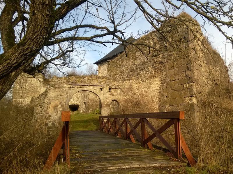 The ruins of Čabraď Castle are spread on a rock spur above the town of Čabradský Vrbovok in the middle of Krupina Highland. The spur is surrounded by one of the meanders of Litava River and offers a breathtaking view of the surrounding countryside. The trail to this castle leads through Čabraď National Nature Reserve where visitors can admire its untouched nature with the highest number of naturally occurring reptiles in Slovakia. There is a legend connected with Čabraď Castle about a local man who was working in the castle as a weather forecaster. He was an excellent forecaster and his forecasts were very accurate, but only up to a point when sloth and pride got the better of him. One day, he carelessly forecast a sunny day and the lord of the castle got caught out in a rainstorm. The drenched lord then angrily sent him away and replaced him with a donkey that would refuse to go out of its stable when the weather was going to be bad.