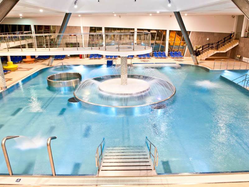 Súčasťou veľkého multifunkčného bazéna a jeho bezprostredného okolia sú najrôznejšie masážne prvky, ako bublinkovače, masážna lavica, masážne trysky či vírivé vane, okrem toho tiež zábavné prvky, ako tobogany, dvojšmykľavka Niagara, divoká rieka či hojdací záliv. Plavecký bazén slúži najmä športovým a rekreačným plavcom, jeho dĺžka je 25 m a člení sa na 6 dráh. Pre deti je pripravený detský bazén, resp. systém dvoch bazénov so šmykľavkou a vodným ježkom.