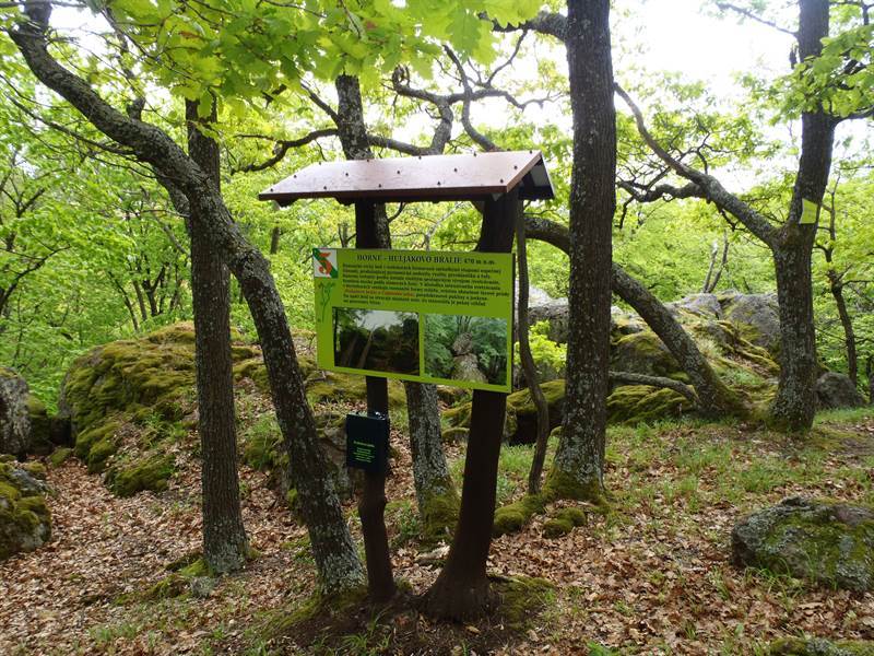 Náučný chodník Čajkovské bralie sa nachádza v južnej časti CHKO Štiavnické vrchy a oboznamuje s prírodnými ,ochranárskymi a historickými zaujímavosťami bezprostredného okolia obce Čajkov. Imnpozantné andezitové skalné formy dali aj názov tomuto miestu. 5 informačných panelov nachádajúcich sa na trase vás upozorní na zaujímavosti a výnimočné miesta, ktoré nájdete v okolí náučného chodníka. Trasa je nenáročná, okružná, o dĺžke 6 km s prevýšením 260 m. Čas prechodu je približne 2,5 - 3 hodiny. Povrch je lesná cesta a lesný chodník.V roku 2014 bol kompletne obnovený.Okrem zaujímavých skalných útvarov (napr. Kamenná žaba) sa tu môžeme stretnúť so zaujímavou lesnou formáciou dubovo – hrabovou, kde má najväčšie zastúpenie dub zimný, dub žltkastý a aj dub cerový. Významnými drevinami sú aj hrab obyčajný a javor poľný. V okolí andezitových brál a sutín sa vyvinuli lipovo-javorové porasty. Z chránených živočíchov môžeme vidieť kunku žltobruchú, roháča obyčajného, spriadača kostihojového, fúzača veľkého alebo kováčika fialového.