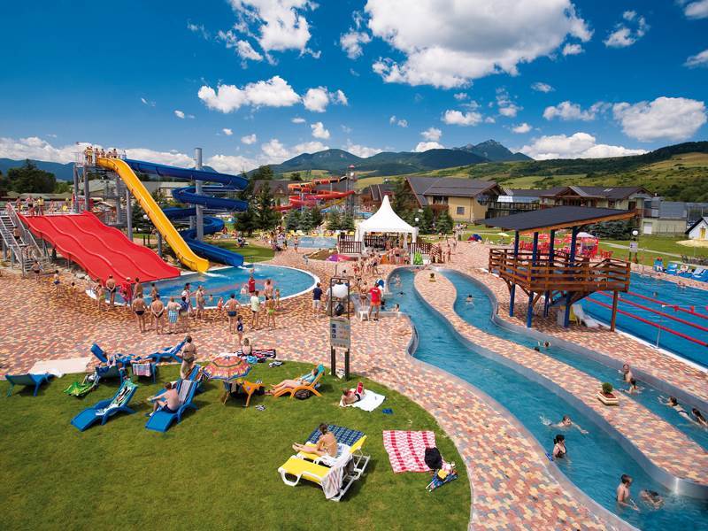 V areáli Vodného raja sa nachádza 8 vonkajších bazénov s geotermálnou vodou s teplotou 26 – 39°C (2 plavecké, 5 relaxačných s rôznymi vodnými atrakciami, 1 neplavecký dopadový) a tiež 3 vonkajšie tobogany. Mimo zimnej sezóny je v prevádzke i 5 bazénov s čírou ohrievanou vodou (1 olympijský plavecký, 1 relaxačný s vodnými atrakciami, 1 detský, 1 neplavecký dopadový, do ktorého vyúsťujú 2 tobogany a trojdráhová šmýkačka a napokon bazén „divoká rieka“ s umelým prúdením vody). Vo vnútornej bazénovej hale nájdete relaxačné bazény s priezračnou ohrievanou vodou a vodnými atrakciami a tiež vnútorný tobogan a dve vírivky.