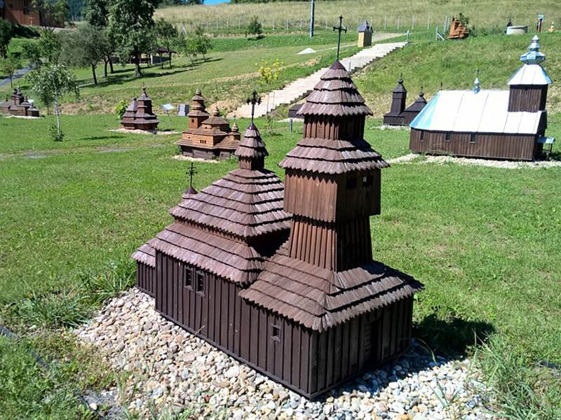 Miniskanzen drevených chrámov v Ľutine