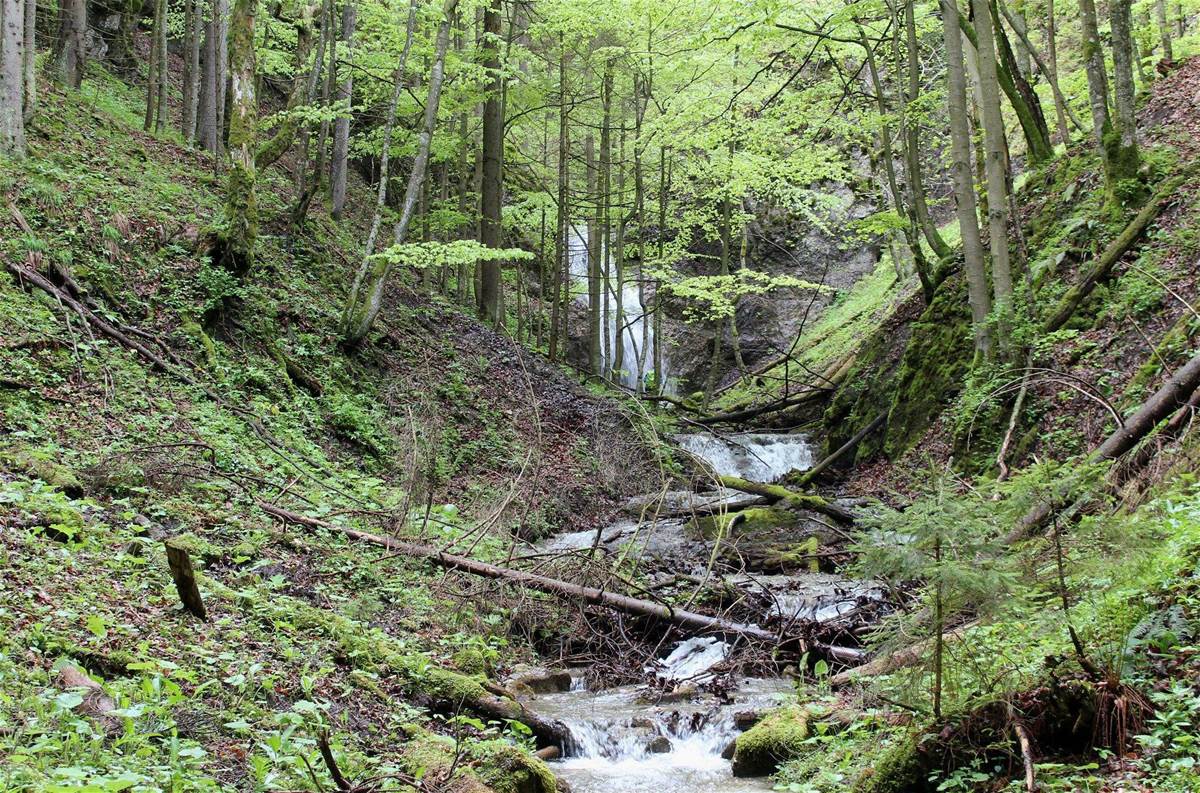 8 m vysoký vodopád v skalnej rokline vedľa Korytnice. Od odbočky za zákrutou je k nemu pešo 15 minút. Dolu nižšie je aj 2 m vodopád.