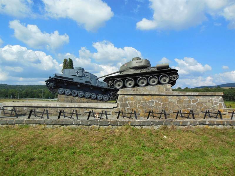 Na ceste zo Svidníka do Vyšného Komárnika, pri odbočke vedúcej k Údoliu smrti stojí unikátny vojenský pamätník s dvoma historickými tankami – sovietskym a nemeckým. Sovietsky tank je položený vyššie a hlavňou mieri na nepriateľský nemecký. Pamätník bol na tomto mieste inštalovaný na počesť sovietskych tankistov, ktorí sa v rámci Karpatsko-duklianskej operácie v roku 1944 predrali ťažko zdolateľnými horskými priechodmi pri Dukle a zviedli urputné boje s nemeckými okupantmi vyvrcholivšie krvavou trojdňovou bitkou v Údolí smrti.