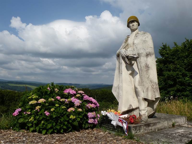 Oblasť Bielych Karpát, ktorou prechádza slovensko-moravská hranica, bola počas druhej svetovej vojny zasiahnutá tuhými bojmi medzi slovenskými povstalcami a Sovietmi na jednej strane a Nemcami na strane druhej. Tento región je preto husto posiaty pamätníkmi pripomínajúcimi oné krvavé udalosti. Jedným z nich je i pamätník so sochou a spoločným hrobom padlých sovietskych vojakov nachádzajúci sa v osade Grúň, ktorá je súčasťou obce Nová Bošáca. Pamätník bol odhalený ešte v roku 1945 a dnes je národnou kultúrnou pamiatkou.