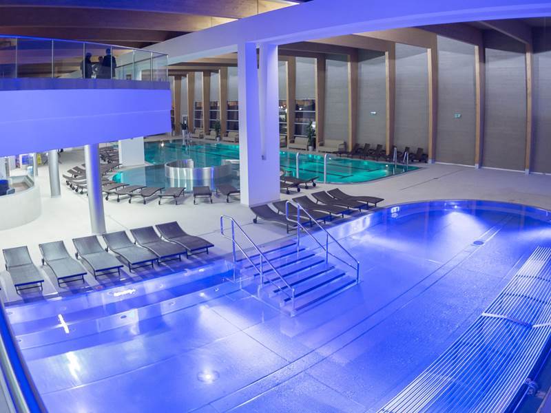 V tunajšom Vodnom svete nájdeme 4 bazény, ktoré sú prístupné v každom ročnom období. Vonkajší bazén s teplotou vody 35 až 38°C je vybavený masážnymi tryskami, špeciálnymi tryskami na masírovanie nôh, perličkovými lavicami a chrličmi vody. V krytom relaxačnom bazéne sa nachádzajú plavecké dráhy pre športovcov, ale aj vodné atrakcie, ako je divoká rieka, vodná hojdačka, perličkové lavice, masážne trysky a chrliče vody. V krytom oddychovom bazéne sa o dokonalú pohodu návštevníkov okrem iného postará 10 perličkových ležadiel, perličkové masážne trysky na sedenie, masáže chrbta a nôh a tiež masážne trysky na masírovanie tela v rôznych výškach. Súčasťou tohto bazéna je aj bio fit bar s vodopádom. Pre deti je pripravený detský bazén s viacerými zábavnými prvkami, ako je šmykľavka veľryba či striekajúci nosorožtek. Malých i veľkých potešia 2 vnútorné tobogany. K dispozícii je aj vonkajšia vírivka.