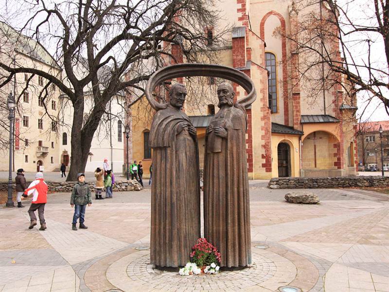 Priestor pred hradným kostolom v Banskej Bystrici zdobí bronzové súsošie Štefana Moyzesa a Karola Kuzmányho v nadživotnej veľkosti. Obaja dejatelia sú spojený oblúkom, v čom sa skrýva hlboký význam – symbolizuje to jednotu slovenských katolíkov a evanjelikov v národno-obrodzovacom zápase. Katolícky biskup Štefan Moyzes bol totiž v roku 1863, keď vznikla Matica slovenská zvolený za jej prvého predsedu, zatiaľ čo prvým podpredsedom sa stal evanjelický kňaz Karol Kuzmány.