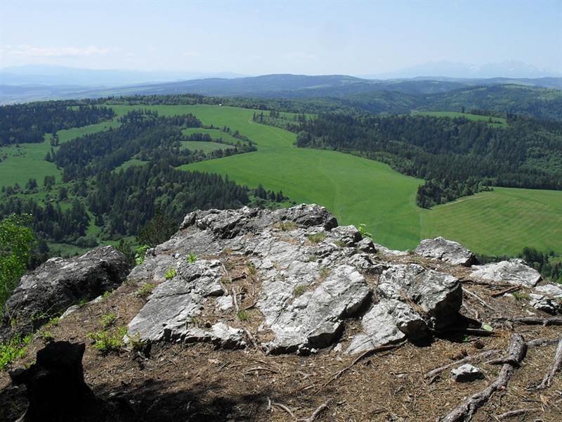 Vyhliadkové vápencové bralo Zelená skala sa nachádza v pohorí Branisko, neďaleko obce Vyšný Slavkov. Jeho názov je pravdepodobne odvodený od machu, ktorý ho obrastá. Z vyhliadky na Zelenej skale sa možno pokochať krásnym rozhľadom na západ, ktorému dominuje náhorná plošina Sihoť. Vidno odtiaľto tiež mohutný Spišský hrad a za priaznivých podmienok i Vysoké Tatry. Na vrchole skaly sa nachádza upravené ohnisko. K zelenej skale sa viaže povesť o poklade kráľa Mateja, ktorý vraj leží v jej útrobách. Každoročne na Veľký piatok sa vraj skala na krátky čas otvára a ponúka možnosť nabrať si z ukrytého bohatstva. Toto dobrodružstvo sa však nevypláca, kto tam totiž vojde, zvyčajne prepadne chamtivosti a v zápale zbierania cenností nestihne vyjsť von. Zelená skala je najjednoduchšie prístupná po žlto značenom turistickom chodníku z Vyšného Slavkova. Po tomto chodníku možno od skaly pokračovať až na neďaleký najvyšší vrchol Braniska – Smrekovicu.